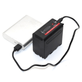 Ela possui uma saída USB de 2.1A e uma entrada Micro-USB de 5V que pode ser usada para carregar com um plugue de parede ou uma fonte de alimentação USB. A Capacidade da Bateria NP-F980 pode ser verificada rapidamente através do medidor LED de 4 segmentos.