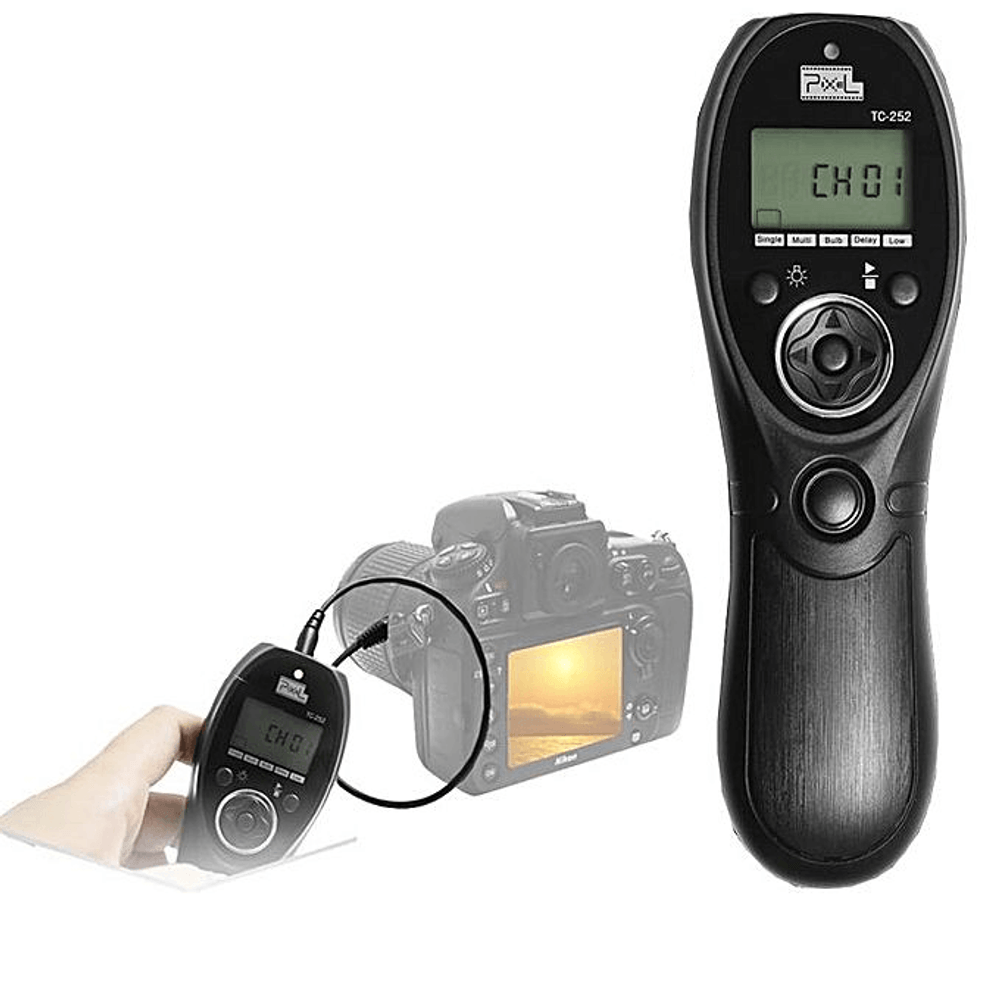 Com o Controle Temporizador de obturador é possível realizar fotos singulares, várias fotos e fotos com velocidade de obturador personalizada. Se você conseguir ajustar o tempo de exposição em sua Câmera Nikon, o Controle Temporizador Timer Pixel permite que você defina manualmente o tempo de exposição até cerca de 99 horas. O disparo com atraso também é possível com o Timer Pixel TC-252, Neste modo de disparo, você pode selecionar o número de fotos que deseja tirar (1-99) após definir um atraso de até 59 segundos. Uma vez que o cronômetro tenha contado, a câmera começará a tirar o número de fotos selecionado com um intervalo de 1 segundo.