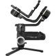 O Estabilizador de Mão Gimbal Crane-3S Zhiyun tem duas opções para a alça destacável e angular. Está incluído o SmartSling, que oferece uma alça ergonômica com um joystick e botões de controle integrados, e o EasySling opcional fornece uma alça de mão simples e confortável, sem controles. Todos os controles necessários são fornecidos na ponta dos dedos, na parte superior da alça principal, juntamente com uma tela de status do OLED. O aplicativo Zhiyun para iOS / Android fornece muitas das mesmas funções de controle, além de recursos especiais como Panorâmica, Time-Lapse do foco, Motion-Lapse, Time-Lapse de longa exposição, configurações da câmera e muito mais.