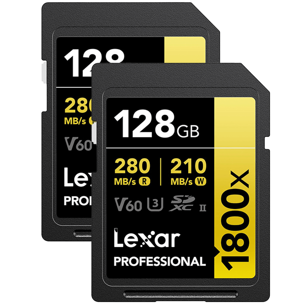 Kit 2x Cartões SDXC 128Gb Lexar Gold 4K 1800x 280Mb/s UHS-II / V60 / U3 / Classe 10