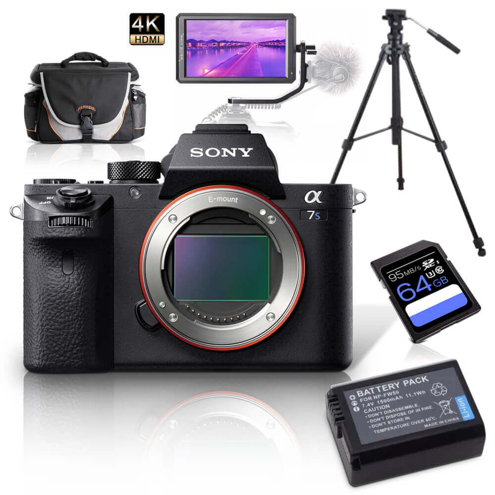 Kit Sony Alpha a7sII Mirrorless + Monitor 5.6" + Tripé de Vídeo + Bolsa + Bateria Extra e Cartão 64Gb