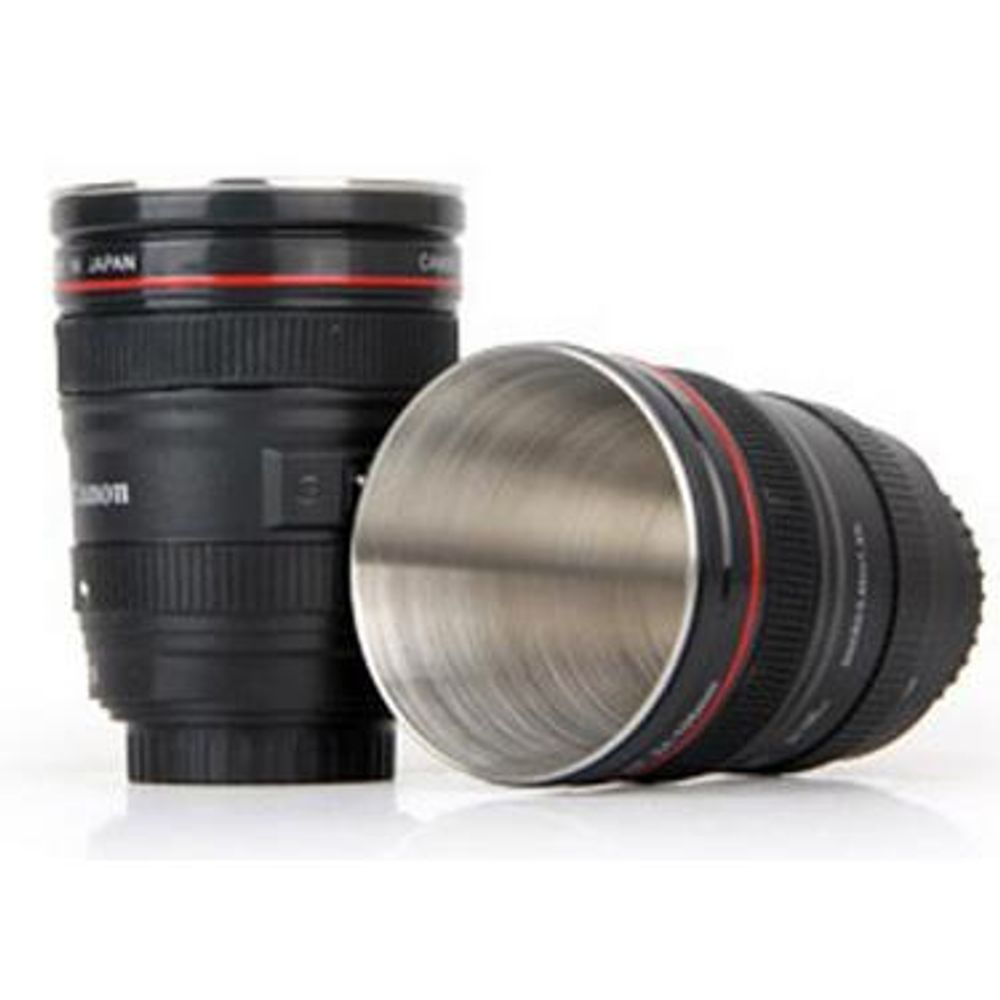 Seja para um familiar ou amigo, ou uso próprio, este Kit com 2 Copos Térmicos em Formato de Lente EF 24-105mm é ideal para os amantes de fotografia!