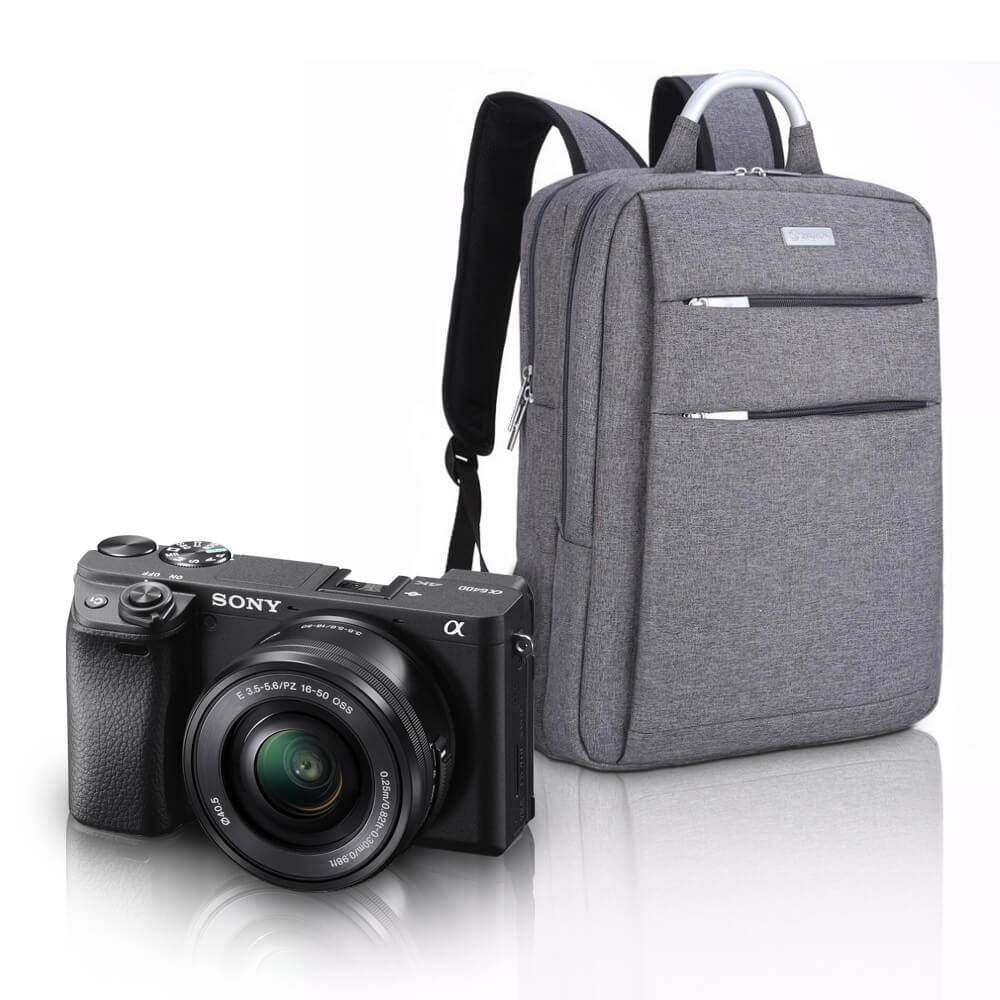 Kit Sony a6400 Mirrorless com Lente 16-50mm + Mochila Profissional à Prova D'Água e Laptop