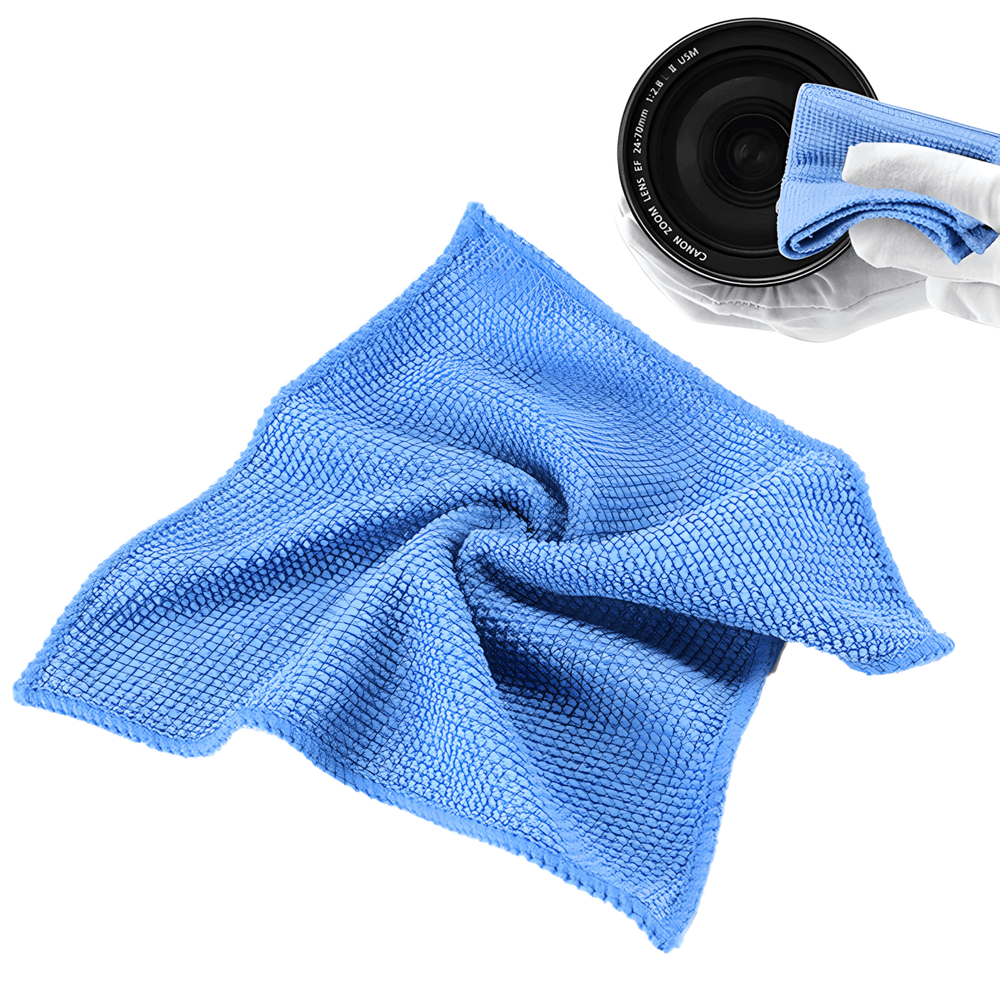 • Pano de microfibra azul, tamanho compacto de 12×12cm