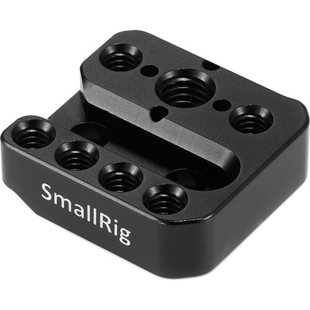 A Placa de Montagem SmallRig 2214 é feita em de alumínio e possui Múltiplas Roscas 1/4"-20, uma Rosca 3/8"-16 de acessórios anti-torção do estilo ARRI, uma montagem de sapata e um Trilho NATO, fornecendo uma variedade de opções de Montagem, como Monitores, Braços Articulados e Mágicas, Microfone, Iluminadores de Led, entre outros acessório para o seu Estabilizador Gimbal.