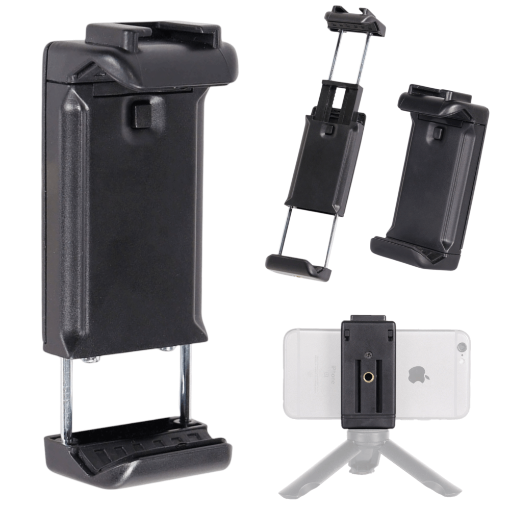 O sistema expansível do Suporte Holder para Smartphone e Tablet possui abertura regulável de 7cm até 18,5cm, acomodando desde smartphones compactos até tablets de grande porte com segurança total. Seu clip de pressão com revestimento interno antiderrapante garante fixação firme, sem riscos ao aparelho, mesmo durante movimentações bruscas. Ideal para uso em tripés, bastões selfie ou suportes de mesa, o design do Suporte para Celular e Tablet facilita o enquadramento estável em vídeos, videochamadas, lives ou gravações externas.