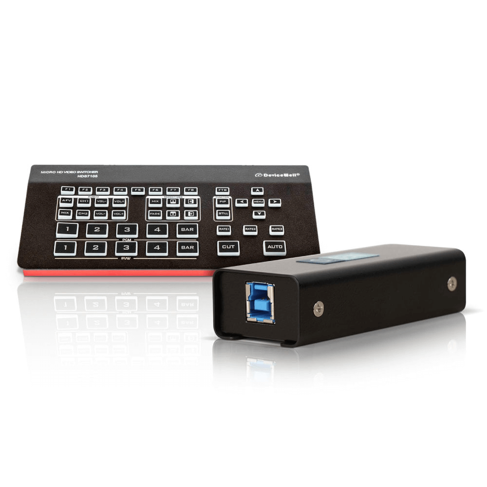 O Switcher de Vídeo MultiView DeviceWell HDS7105 4x HDMI e DP DisplayPort 5 Canais LiveOBS de Transmissão High Definition é um Comutador de vídeo de alta definição que adota um design integrado portátil, tamanho pequeno e peso leve de 5 Canais que possui 4 entras HDMI mais uma DisplayPort, pode gerar 4 vídeos com Sinais Simultaneamente ao Monitor Multi-Screen para Exibição. O Switcher de Vídeo DeviceWell integra processador de múltiplas visualizações, gerador de efeitos especiais, processador de áudio, teclado de controle e outros componentes comuns do comutador. O Switcher de Vídeo DeviceWell HDS7105 de Ata Definição suporta 4 entradas de sinal HDMI + 1 DP "DisplayPort", um total de 5 sinais de vídeo. O sinal de visualização externa pode ser emitido simultaneamente.